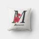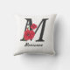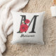 Personalized monogram editable M text red flower floral beige chequered plaid
