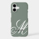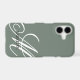 Personalized monogram elegant sage green iPhone 17 case . Elegant script typography in light gray color. Create your own personalized hex color smartphone cover with luxurious design template. Fancy swirly lettering that can be enlarged or made smaller and placed to your liking. You can also change all the colors of the letters and background. Classy monogrammed design for personal use, wedding couple or business. Add your own glamorous logo optionally. Chic blank template with pretty soft tone background image. Beautiful template with luxury style font. Also available for Samsung Galaxy S phones and other popular brands. Decorative phone accessories that can be completely customized with your own print. Change quantity for the best offer sale price.