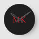 Personalized Monogram Initials Modern Black Clock. Two letter initial monogram shown in vivid red on black in a timeless design that he'll enjoy - would make an excellent gift for father's day, birthdays, holidays, graduation, promotion, or any special occasion. Excellent for home or office decor alike. Personalize with your own text. Visit our Zazzle store, Simon&Grace for matching products and more. Please contact us if you require any assistance.