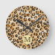 Personalized Monogram Leopard Print Pattern. Round Clock
