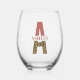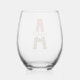 Personalized Monogram Letter A Pink Leopard print Stemless Wine Glass