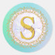 Personalized Monogram Mandala Gold and Blue Classic Round Sticker