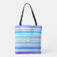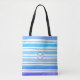 This trendy chic personalized nautical sea blue stripey monogram tote bag will make a great accessory to any shopping trip. Featuring a beautiful mix of watercolor blues with a deep blue and white circular monogram. The monogram initials can be customized to the colour of your choice, making it a perfect treat for yourself or as a special gift to a friend or family member.