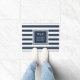 Elegant personalized initials monogram doormat featuring a navy blue and white striped pattern with your initials and family name with your established date set in a bordered square. Personalize with your details and customize the colour to the colour of your choice. Designed by Thisisnotme©
