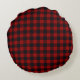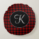 Personalized Monogram Red and Black Buffalo Plaid Round Pillow
