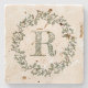 This elegant stone coaster features a circular wreath floral design in grey-green (sage green) with tiny faint pink buds, and can be customized with a matching monogram (initial). A perfect hostess or housewarming gift. Colours: sage green, faint pink.
