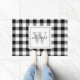 Personalized Monogram Script Black Buffalo Plaid Doormat