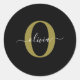 Personalized Monogram Script Name Black White Gold Classic Round Sticker
