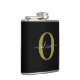 Personalized Monogram Script Name Black White Gold Hip Flask