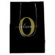 Personalized Monogram Script Name Black White Gold Medium Gift Bag