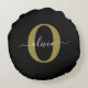 Personalized Monogram Script Name Black White Gold Round Pillow
