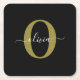 Personalized Monogram Script Name Black White Gold Square Paper Coaster