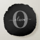 Personalized Monogram Script Name Black White Grey Round Pillow