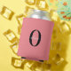 Personalized Monogram Script Name Black White Pink Can Cooler