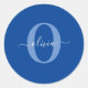 Personalized Monogram Script Name Blue White Classic Round Sticker