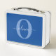 Personalized Monogram Script Name Blue White Metal Lunch Box
