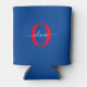 Personalized Monogram Script Name Blue White Red Can Cooler
