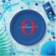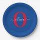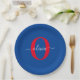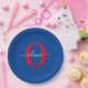 Personalized Monogram Script Name Blue White Red Paper Plate