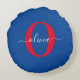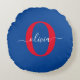 Personalized Monogram Script Name Blue White Red Round Pillow