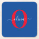 Personalized Monogram Script Name Blue White Red Square Paper Coaster