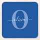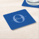 Personalized Monogram Script Name Blue White Square Paper Coaster