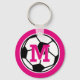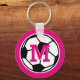 Personalized monogram soccer mascot keychains for girls. Make your own monogrammed keychain for kids coach, players and fans. Add your name initial letter. Customizable colour ie girly NEON PINK. Cute favour for sports themed Birthday party.