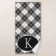 Personalized Monogrammed Black White and Gold Plaid Bath Towel