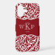 Personalized Monograms Cranberry Damask Pattern Phone Case