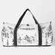 Personalized Mountains Adventure Awaits Duffle Bag with hand drawn sketch of mountains and tall trees for the adventurer and spirited traveller who loves to hike or go camping in the great outdoors. This stylish duffle bag is designed for those who embrace the spirit of adventure. Featuring hand-drawn sketch-style graphics of majestic mountains and towering trees, along with the inspiring phrase "Adventure Awaits," it’s the perfect companion for your next outdoor excursion or weekend getaway. The spacious interior provides plenty of room for all your essentials, while the removable and adjustable shoulder strap ensures comfort and versatility, whether you're carrying it on your shoulder or in hand. Ideal for adventurers, hikers, campers, or travelers who appreciate both function and style, this duffle bag is a must-have for anyone who loves exploring the great outdoors. It makes a thoughtful gift for someone gearing up for their next adventure, whether for birthdays, holidays, or a special occasion. With its rugged design and motivational message, it’s the perfect way to carry your gear while staying inspired on your journey.