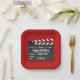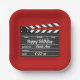 Fun paper party plates feature retro style movie clapboard with customizable text on red background (change to any colour you prefer). Personalize for birthdays, movie awards nights and more. Coordinates with other products from our Movie Theme Gift Wrap and Party Supplies Collection