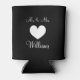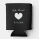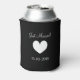 Personalized Mr and Mrs wedding can coolers for bride and groom. Custom classy black and white wedding can coolers with cute heart. Classy design with name or monogram letters. Cute love symbol design for future husband and wife. Create your own unique cosy wedding favour / souvenir for guests at your party too. Romantic theme beverage holder design. Perfect for alcoholic drinks like beer. Also available for bottles. Elegant script typography. Custom double sided cozy cooler for chic wedding, fancy bridal party, funny bachelor party etc. Just married and wedding date.