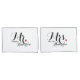 Mr. and Mrs. - His and Hers honeymooners pillowcase set in stylish black script text - shown on white linen background. Customize the newlywed couple's last name, first names, wedding date, or change the colours, add monogram initials, or special saying to create a truly unique personalized keepsake for the new bride and groom. Perfect novelty gift for bridal or couple's shower, bachelorette party, engagement, housewarming, hostess, or milestone anniversary. Click Customize It to change the fonts or add your own custom text.