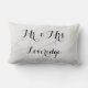 Personalized white and grey marble Mr. and Mrs. lumbar pillow. This stylish pillow features elegant black writing. You can personalize it with your surname, and even change the text colour and font style using the customize option. Perfect for a wedding, engagement or anniversary gift!