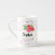 A wonderful Bone China mug with a painted rose bouquet and a handwriting name in a refined glitter gold fram on a sparkling background of coloured confetti and spangles is a great purchase for yourself or as a nice gift. The design is ready to personalize: press "Personalize this template" to editting the name. Alsow you can click "to customize further" to open up full editing options for make design to whatever you want it to represent: to arrange taxt, change a font and a font colour and also to add additional information, images or remove existing.