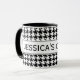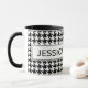 Personalized mug with cute houndstooth pattern. Elegant design with hounds tooth check print. Dogstooth background black and white. Cute gift idea for home or office.