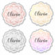 A set of 4 custom name hand drawn mandala flower designs in a rose gold tone, gold tone, silver and pastel gradient.