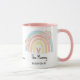 Show a special Mum how much she is loved with this charming personalized mug. It features a sweet design with a soft pastel rainbow arch, delicate floral clusters, and space for a custom message or children's names. This thoughtful gift is perfect for Mother's Day, birthdays, or just to bring a smile to Mum's face.