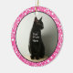 Add your photo to this personalized custom ornament, with a border of music notes and clefs on a pink background.