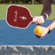 Personalized red pickle ball paddle, with a white treble clef and script typography design. With customizable lettering, you can add your own information. Great for adding a musical touch while enjoying your game.