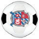 Encourage ball skills with this blue red graphic knights shield heraldry style boys personalized name and age fun football / soccer ball. Shield art with a bird of prey's head, royal crown, personalized age and star crest design. Currently reads Mateo. © Unique art and design by Sarah Trett for www.mylittleeden.com