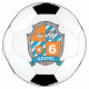 Encourage ball skills with this aqua teal blue orange graphic knights shield heraldry style boys personalized name and age fun football / soccer ball. Shield art with a wolf / dog's head, royal crown, personalized age and star crest design. Currently reads Raoul. © Unique art and design by Sarah Trett for www.mylittleeden.com