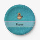 Personalized name beaver turquoise glitter paper plate