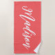 personalized beach towel custom gift, personalized name bath trip towel, custom pool towel for summer, custom beach towel with name, outside birthday vacation trip gift, custom beach towels personalized towel, vacation gift personalized beach towel, custom name towel customized towel, custom towel bridesmaid gift present, best birthday gift personalized towel, coral pink beach towel, bright easy to read beach towel, fun vacation trip towel, pretty beach towel