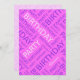 BIRTHDAY PARTY. This modern typographic design in pink and purple uses the words BIRTHDAY and PARTY to convey a clear message. You can personalize the front with a name in matching pale pink script. On the reverse of the card there are lots of lines for details of the party, just type in the boxes to edit as required.