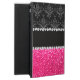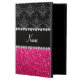 Black damask floral flowers pattern background and pink glitter (not real glitter) black diamonds stripe (faux diamonds, not real) with hearts and dots personalized with your name gifts or monogram gifts or your initials Ideal for bride and groom weddings, wedding showers, engagement showers, engagement party, anniversary, save the date, bachelorette party, birthdays, sister's day and much more featuring an elegant and traditional fancy lettering
