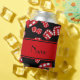 Fun dice gift ideas. Modern and trendy Custom name blackdice pattern background with red dice with red stripe personalized with just add your name gifts or monogram gifts or your initials for a unique gift. Dice gift ideas for card players, gamblers and lovers of games.