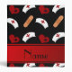 Modern and trendy black nurse pattern with red hearts black x, bandage and nurse hat and red stripe personalized with your name gifts or monogram gifts or your initials. If you hit the customize it button you can change the colour and type of font and you can also add your own pictures. Gift ideas for nurses.