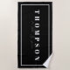 An elegant personalized name black and white beach towel. Customize the elegant script typography with your text. Ideal gift for an anniversary, wedding gift, bridal shower or honeymoon gift.