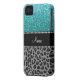 Personalized name blue glitter black leopard Case-Mate iPhone case