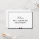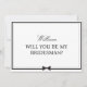 Asking your bridesman to join your wedding party has never been more stylish. Our minimalist bowtie-themed bridesman proposal card is perfect for those who appreciate classic design with a modern touch. Featuring a crisp black-and-white colour palette and a sophisticated bowtie detail, this card brings a timeless elegance to your wedding party proposal. It’s ideal for the bride looking to keep things simple yet meaningful. Customize the names to make your special moment even more personal. Whether you're planning a formal event or something laid-back, this card fits every occasion. Your bridesman will love the thoughtful, tailored approach.